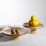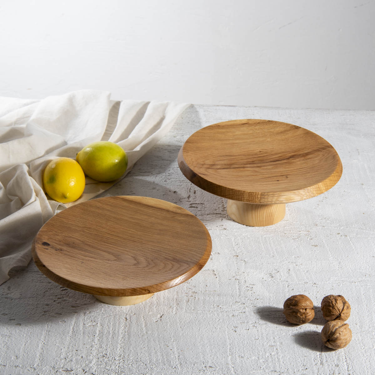Meşe ağacından el yapımı ayaklı sunum tabağı seti.