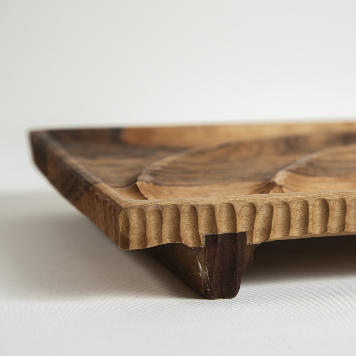 Ceviz ağacından el yapımı ayaklı sunum & tepsi, ekstra büyük boy.