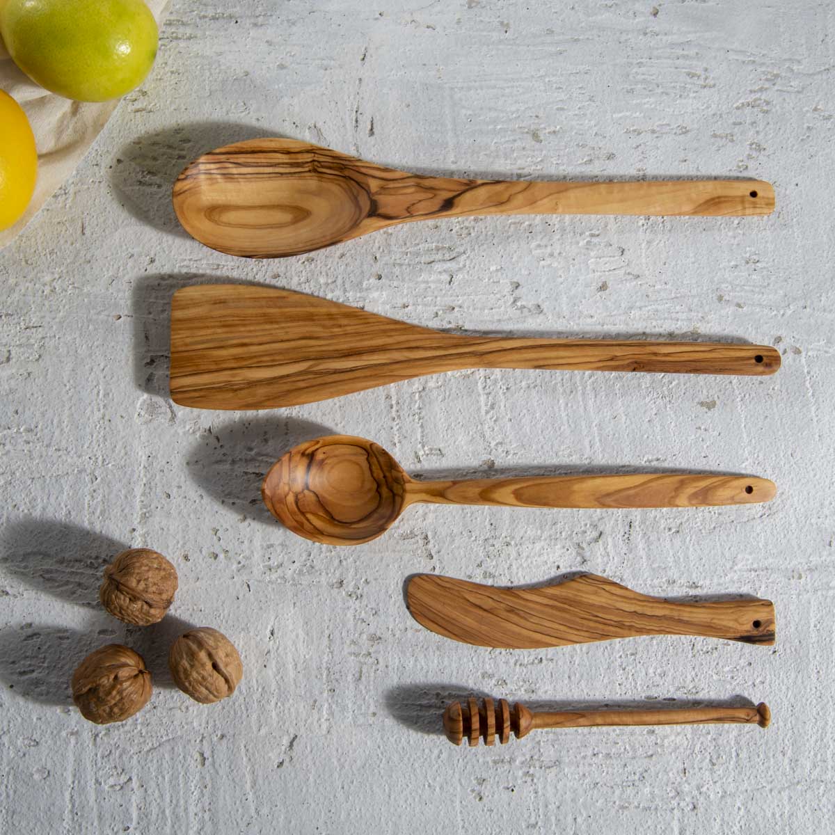 Zeytin ağacından el yapımı mutfak seti.