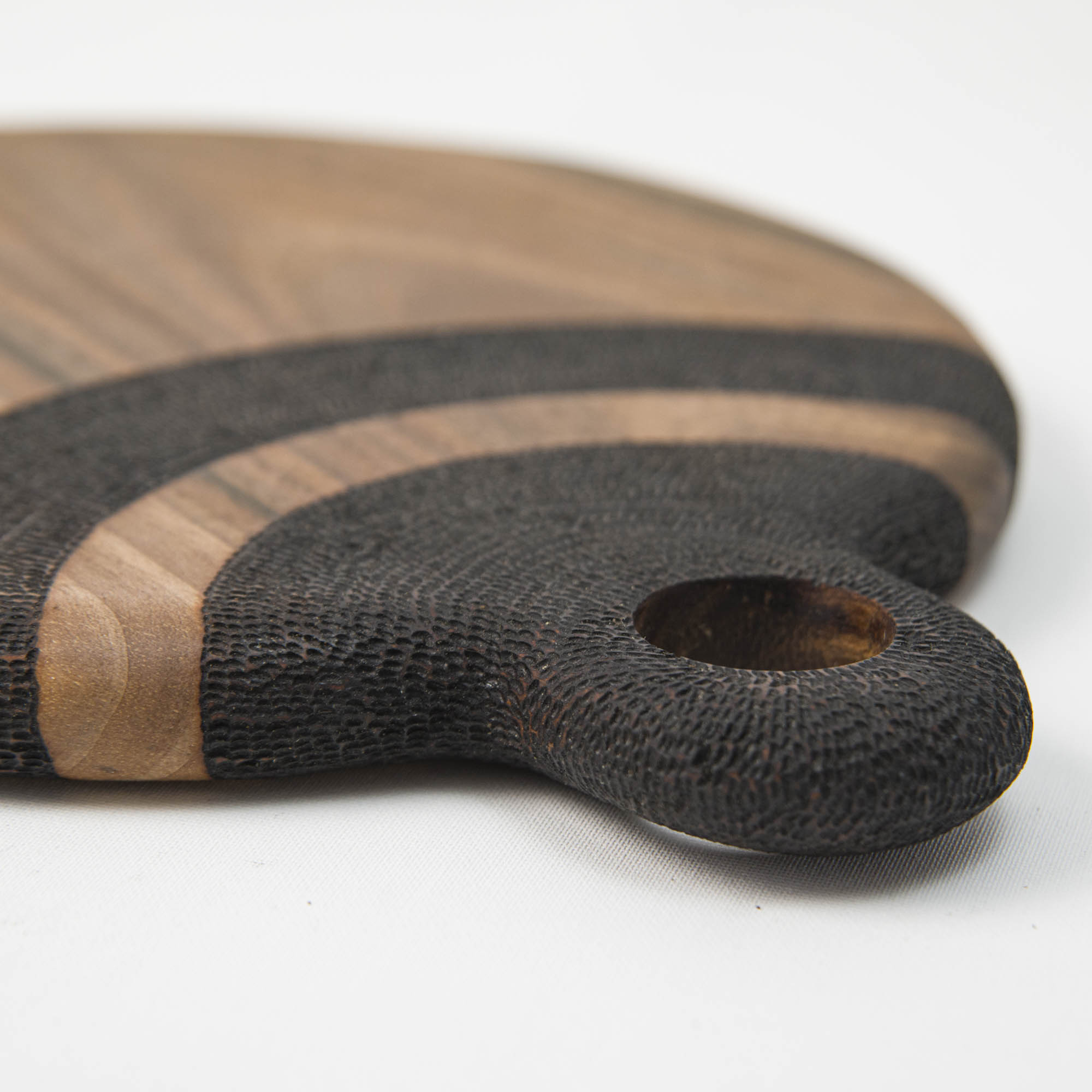 Ceviz ağacından el yapımı servis & kesme tahtası, özel dağlama işlemeli.