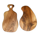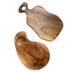 Ceviz ağacından el yapımı servis ve kesme tahtası seti, 2 parça.
