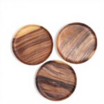 Akasya ağacından el yapımı tabak set, büyük ve ince.