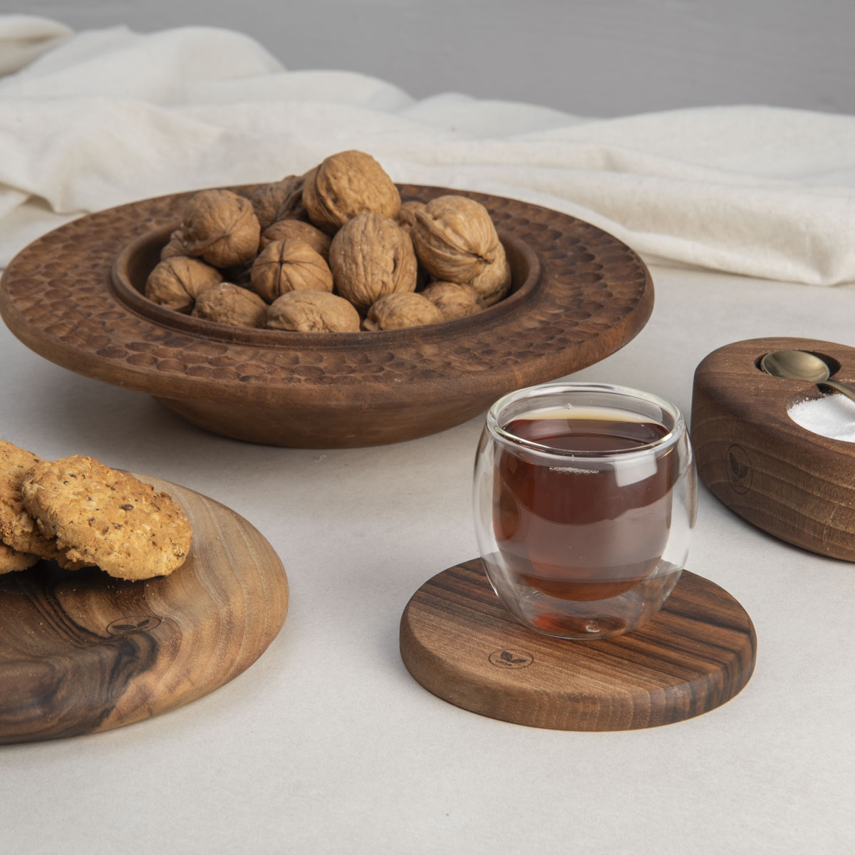 Biz de bu koleksiyonu, 1. sınıf ceviz ağacını doğal yollarla kurutup, incelikle işleyip, zarif sofra ve mutfak ürünlerine dönüştürerek oluşturduk.