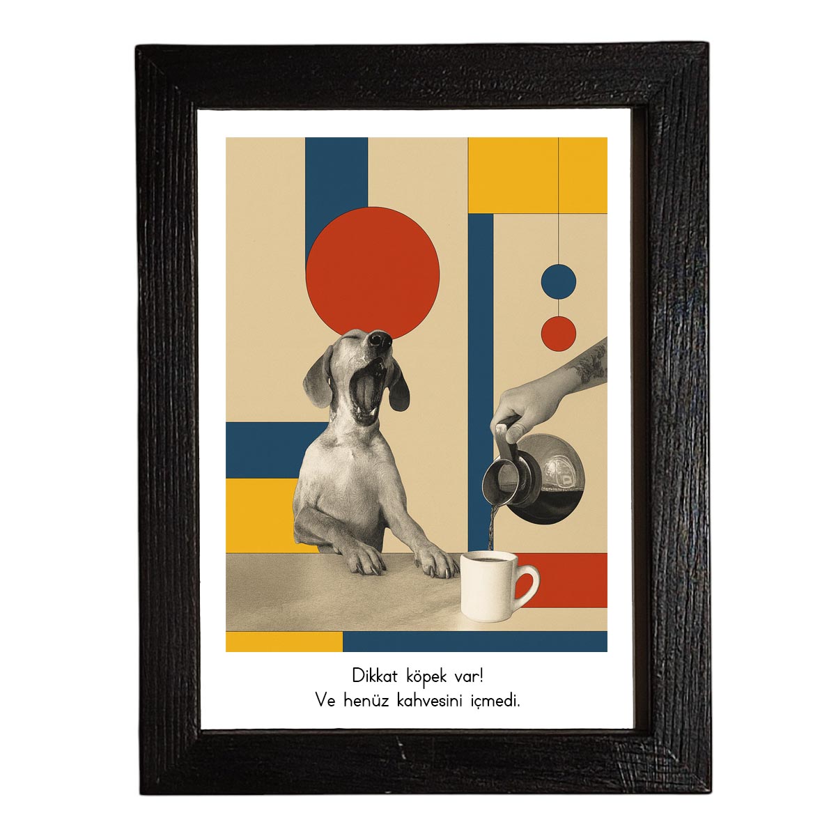 “Dikkat köpek var! Ve henüz kahvesini içmedi.”