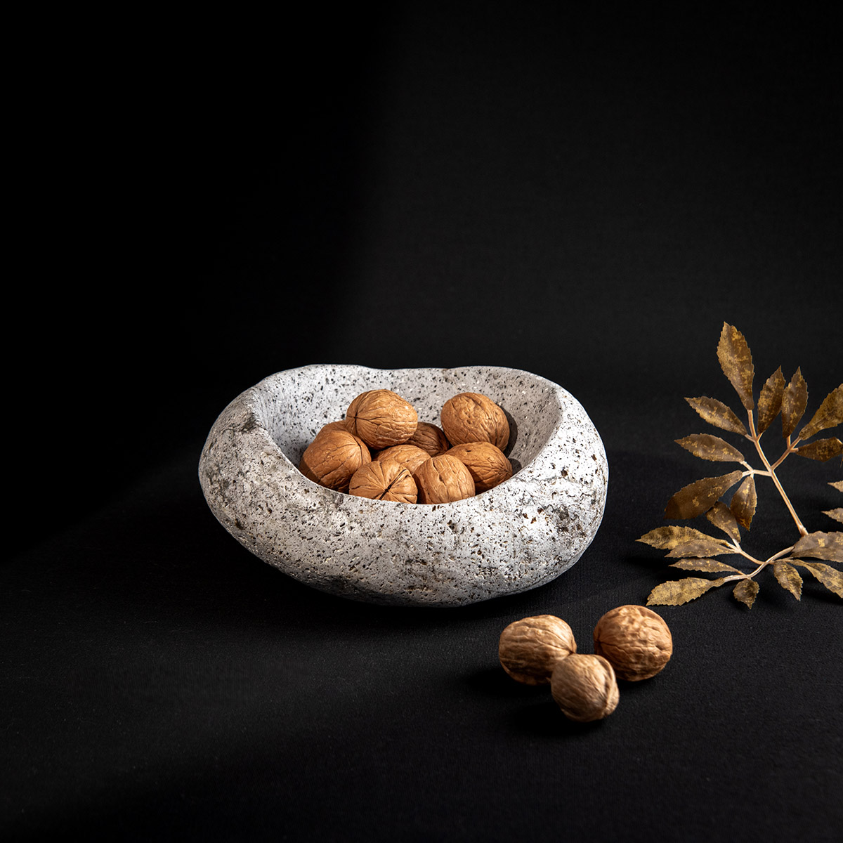 El yapımı doğal taş kase, büyük boy.