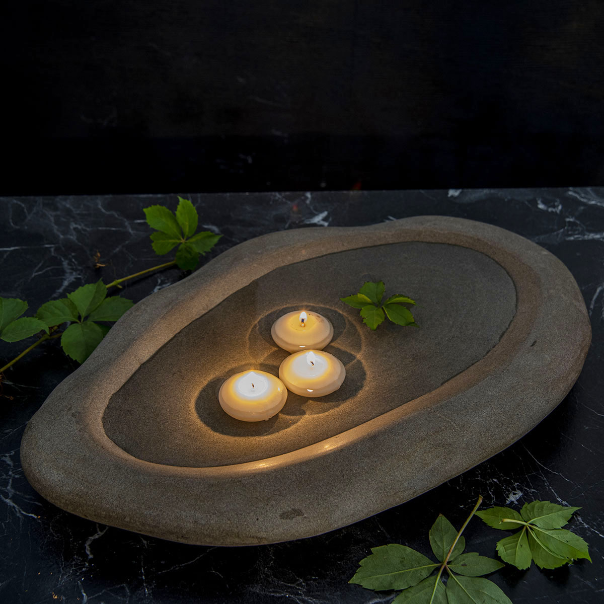 Kullanım kolaylığı ve güvenliği için taşın iç kısmı ve konulan yüzeye temas eden noktaları mermersi bir dokuya ulaşana dek zımparalanmıştır.(8 aşamalı zımpara işlemi)