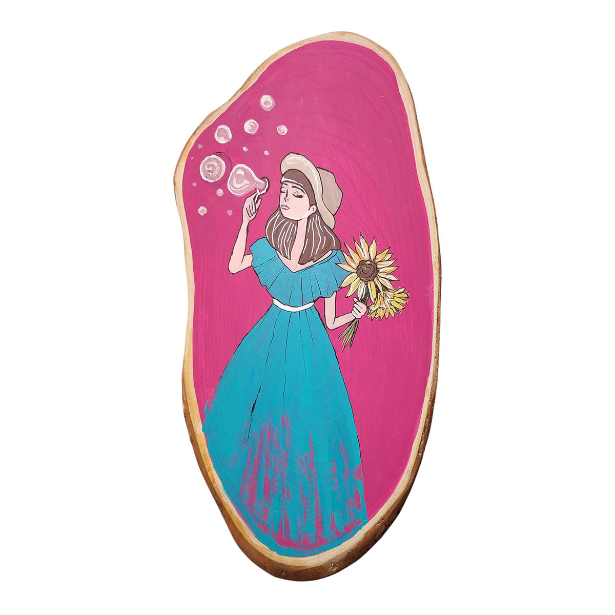 İllüstrasyon dişbudak ağacı dilimi üzerine farklı boyama teknikleri ile aktarılmıştır.