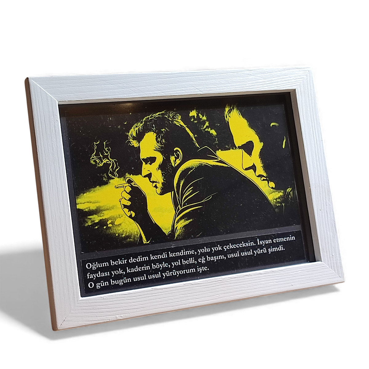 Sahnenin altına filmden seçilen replik yazılmıştır; “Oğlum Bekir dedim kendi kendime, yolu yok çekeceksin. İsyan etmenin faydası yok, kaderin böyle, yol belli, eğ başını, usul usul yürü şimdi. O gün bugün usul usul yürüyorum işte.”