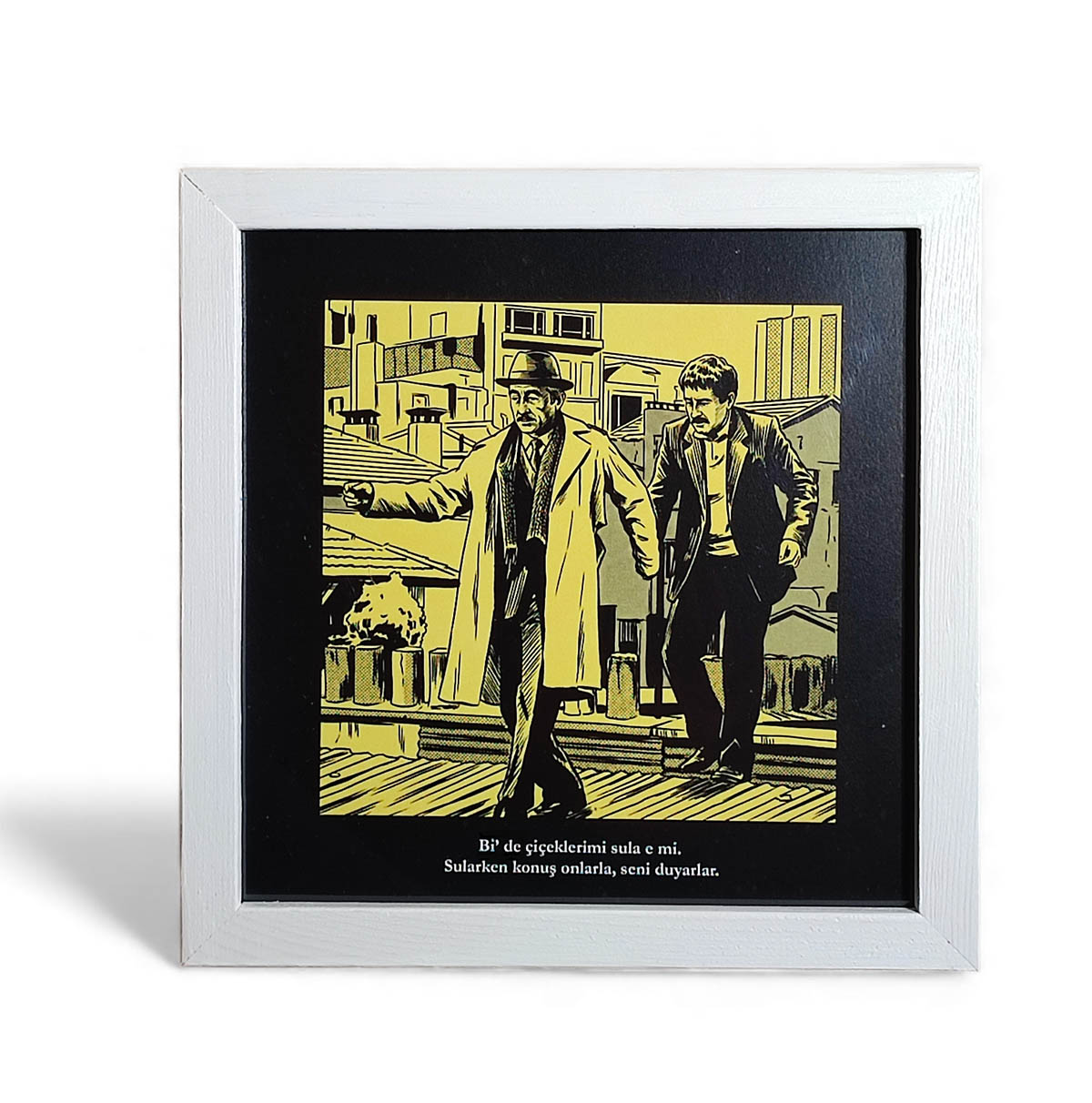 Sahnenin altına filmden seçilen replik yazılmıştır; “Bi’ de çiçeklerimi sula e mi. Sularken konuş onlarla, seni duyarlar.”
