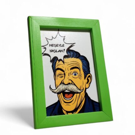 Ahşap üzerine UV baskı ile üretilmiştir.