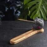 Döküm taş ve kayın ağacından el yapımı tütsülük, kalpli