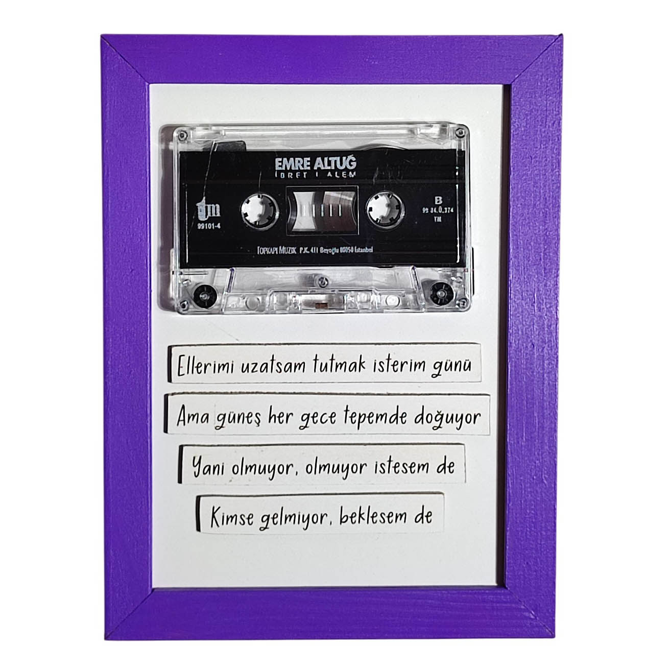 Tabloda Emre Altuğ’un İbret-i Alem albümünün orijinal kaseti kullanılmıştır.