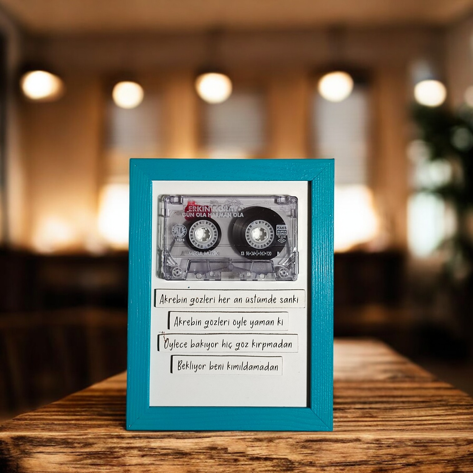 El yapımı ahşap çerçeveli kaset tablo.