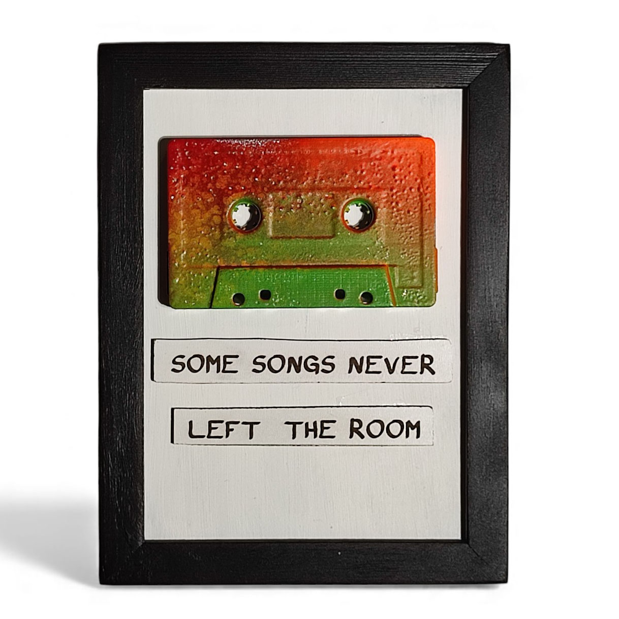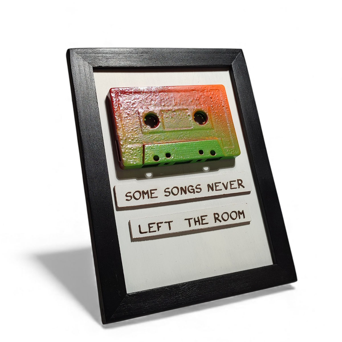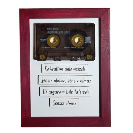 El yapımı ahşap çerçeveli kaset tablo.