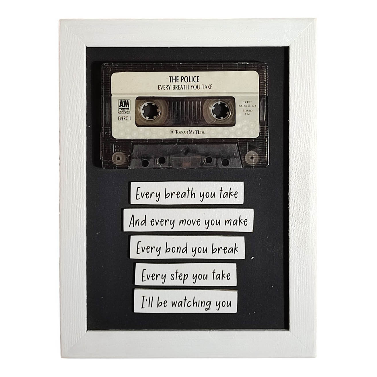 Tabloda The Police’in Every Breath You Take albümünün orijinal kaseti kullanılmıştır.