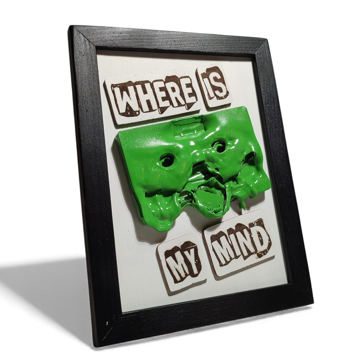 El yapımı ahşap çerçeveli kaset tablo.