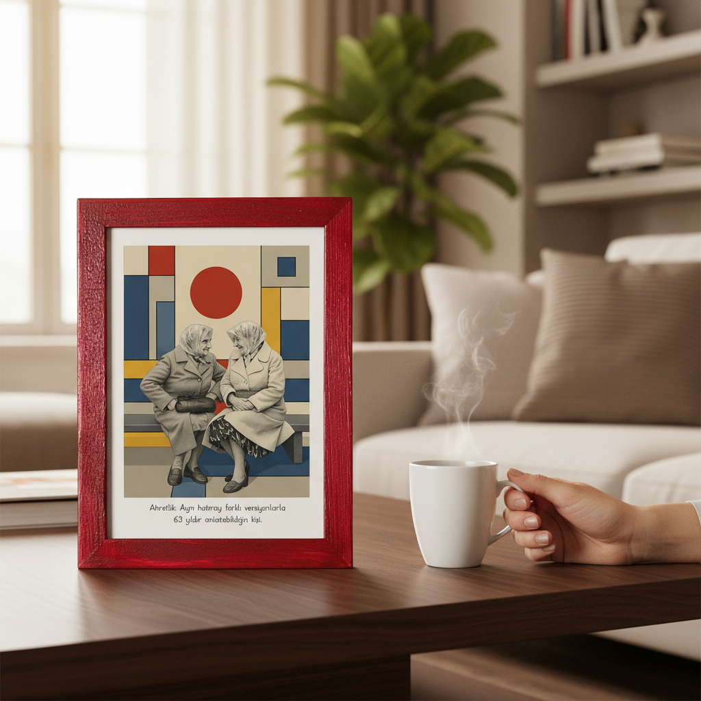Asıldığı duvarda, konulduğu masada dikkat çeken, sohbet başlatan bir tablo.