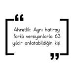 “Ahretlik: Aynı hatırayı farklı versiyonlarla 63 yıldır anlatabildiğin kişi.”
