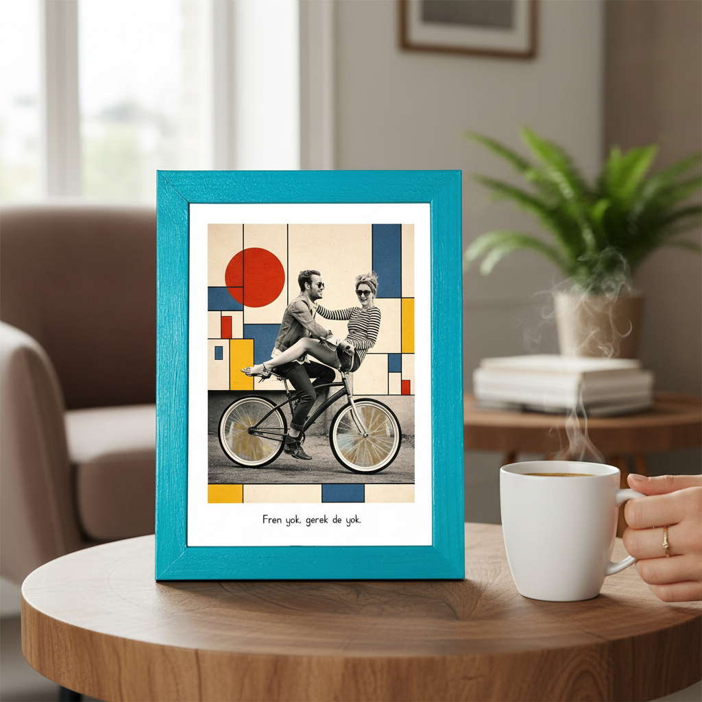 El yapımı ahşap çerçeveli fotoğraf tablo.