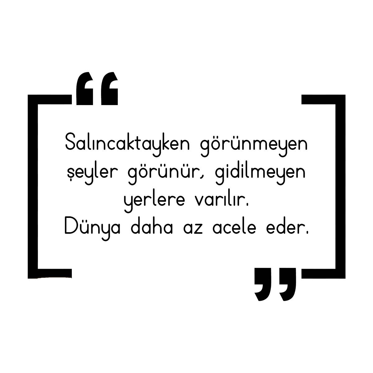 “Salıncaktayken görünmeyen şeyler görünür, gidilmeyen yerlere varılır. Dünya daha az acele eder.”
