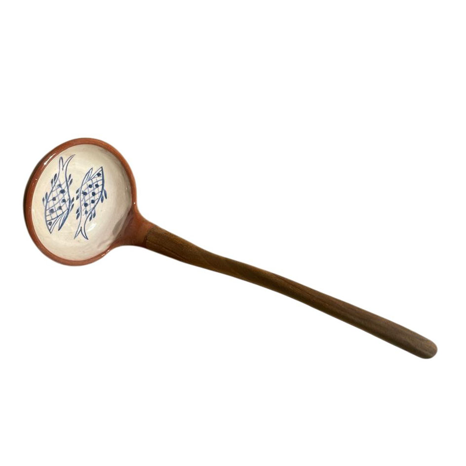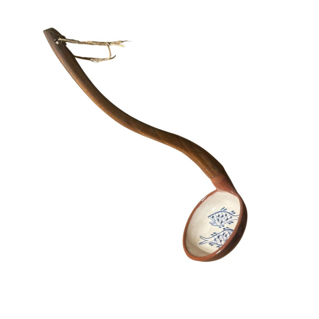 El yapımı ceviz ağacı saplı seramik kepçe.
