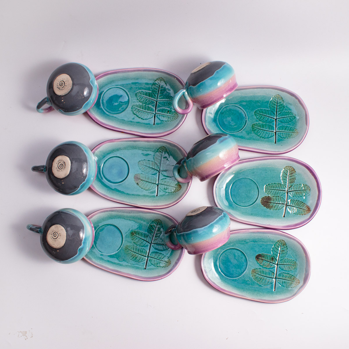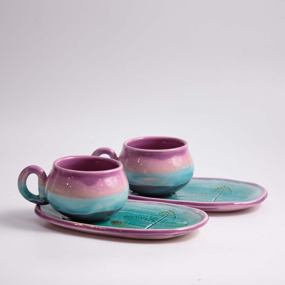 El yapımı 2 seramik fincan ve 2 seramik altlıktan oluşan fincan takımı.