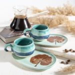 El yapımı 2 seramik fincan ve 2 seramik altlıktan oluşan fincan takımı.