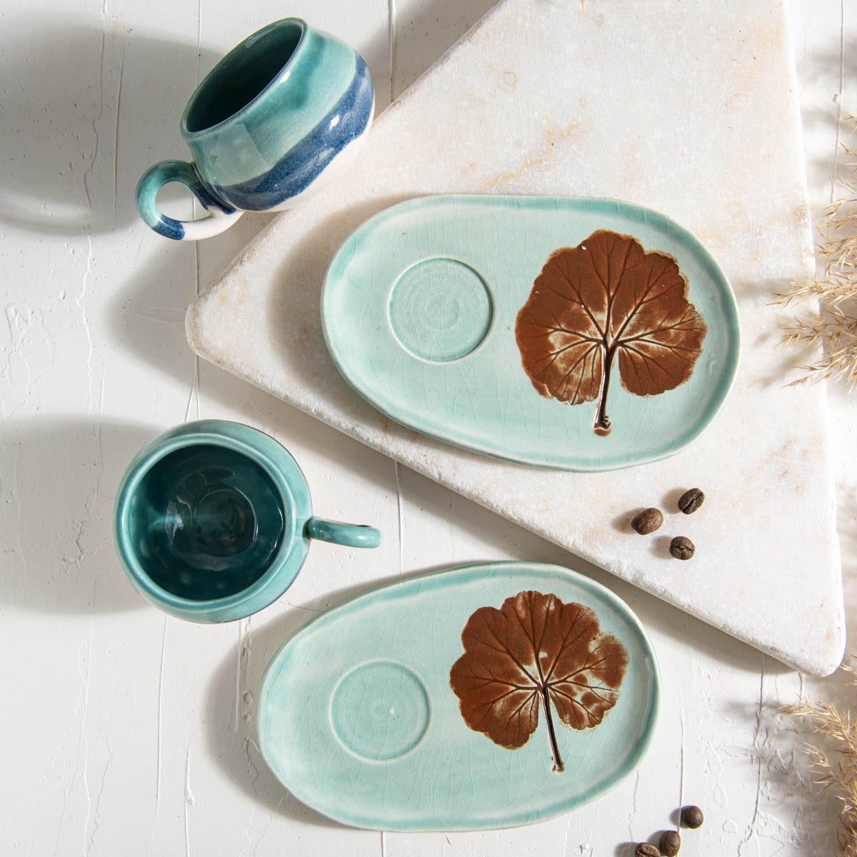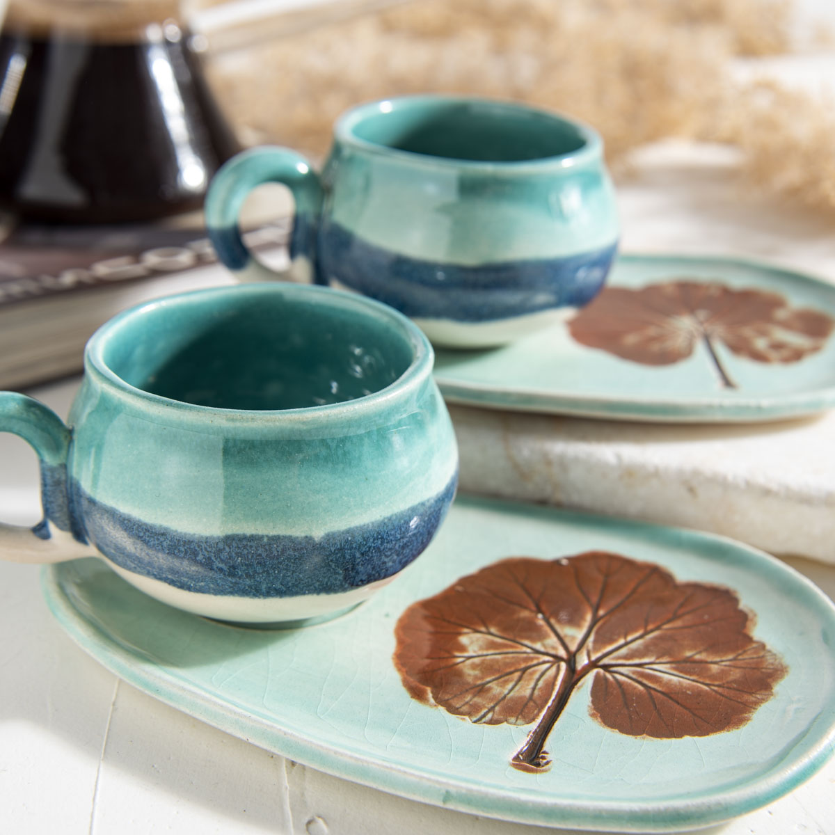 El yapımı 2 seramik fincan ve 2 seramik altlıktan oluşan fincan takımı.