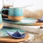 El yapımı 2 seramik fincan ve 2 seramik altlıktan oluşan fincan takımı.