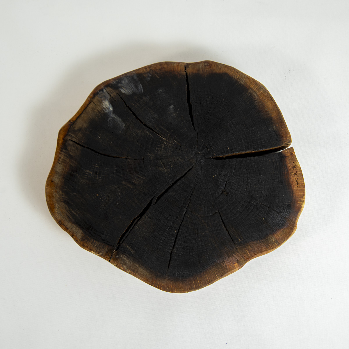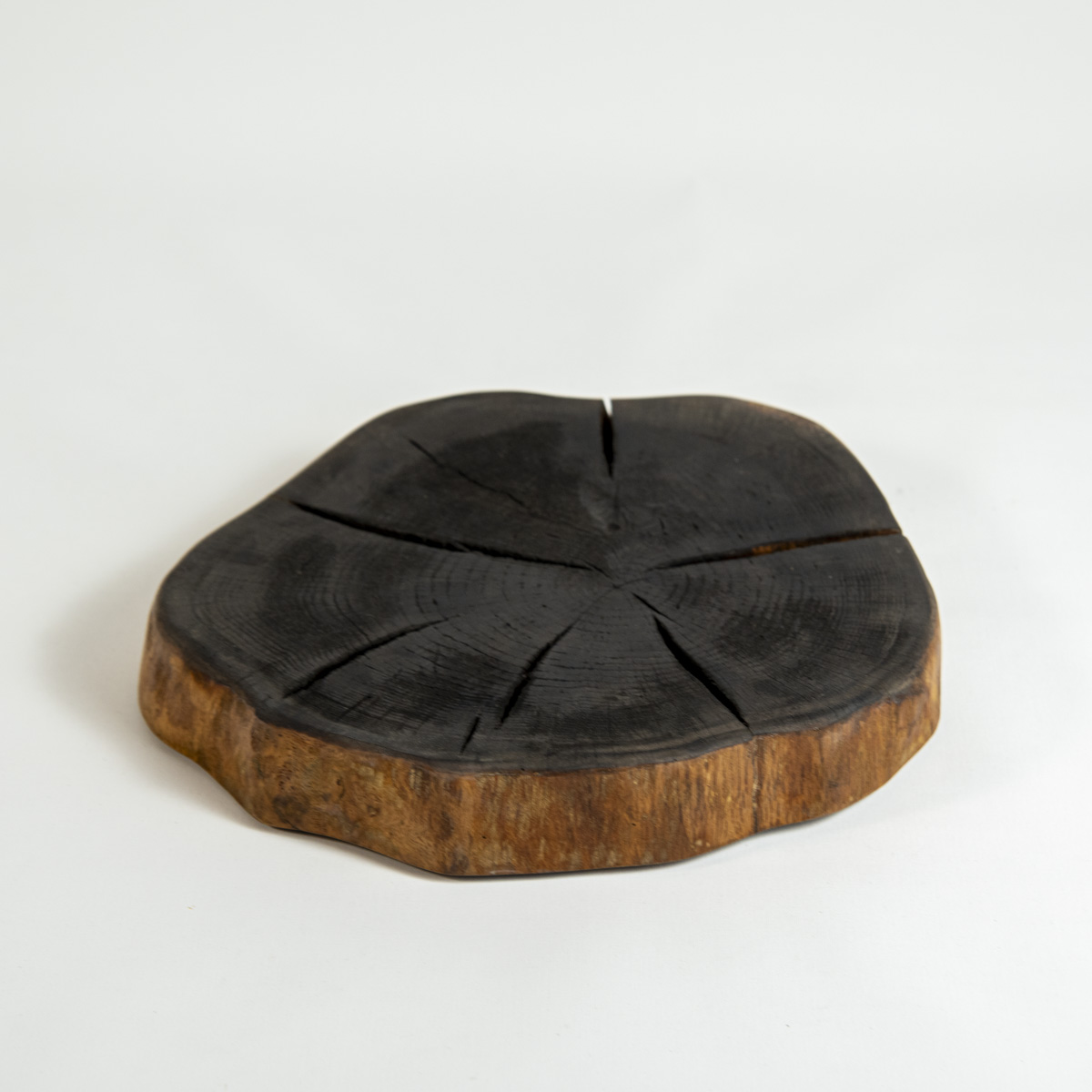 Wabi-Sabi Koleksiyonu – Meşe ağacı diliminden el yapımı sunum tabağı.